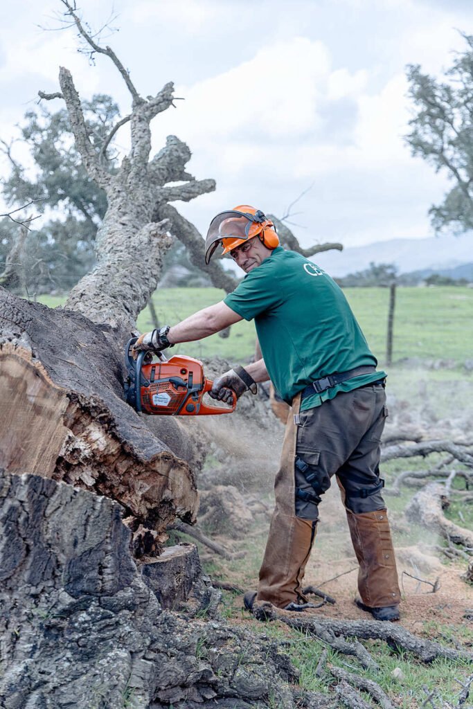 Talas controladas de árboles de cualquier porte, podas de formación y saneamiento, y tronzado con retirada completa de restos vegetales. Operamos con personal formado en trabajos en altura y maquinaria de elevación cuando la situación lo requiere.